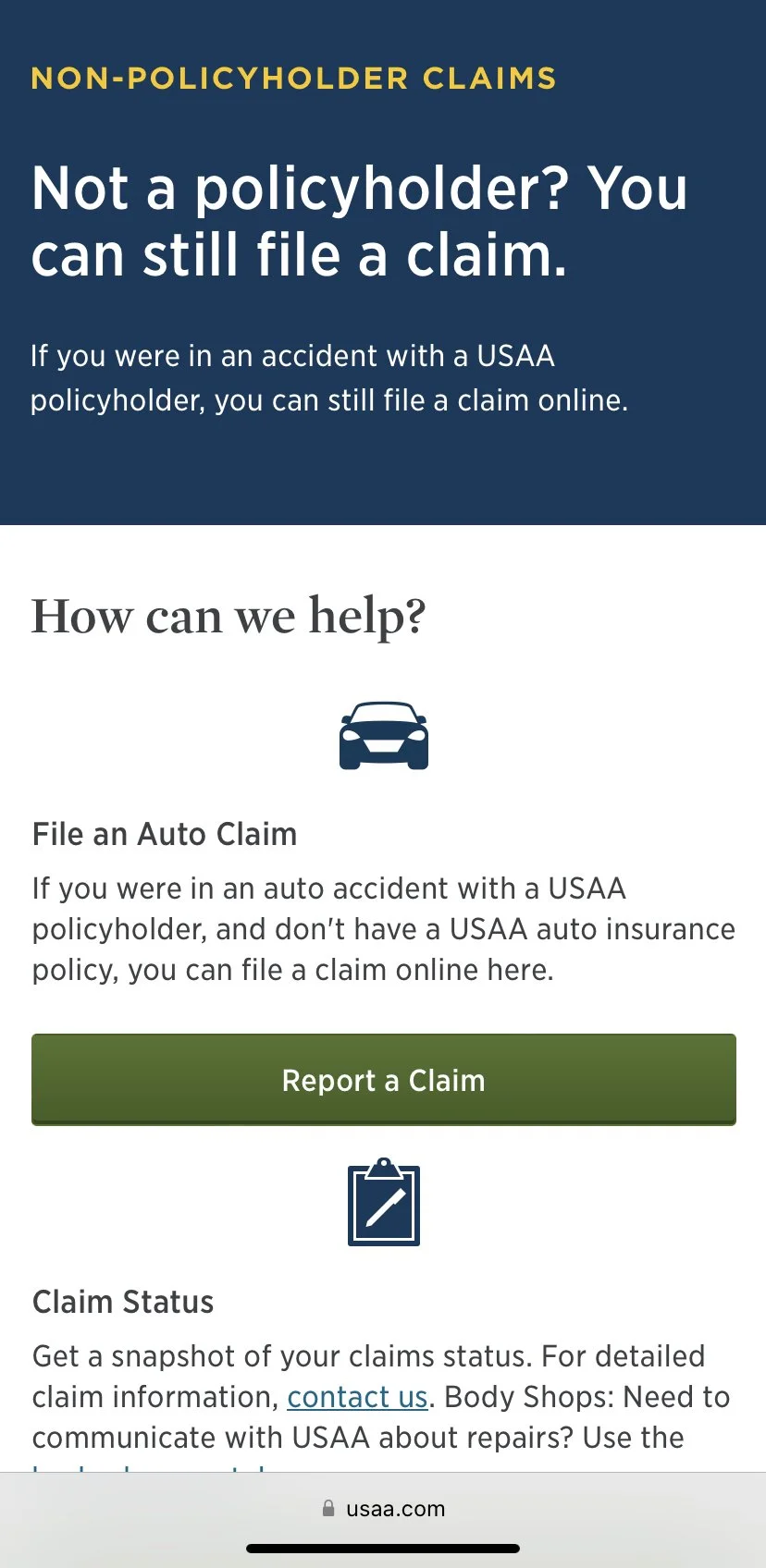 UX & Content Strategy for Auto Claims Nonpolicyholder Page